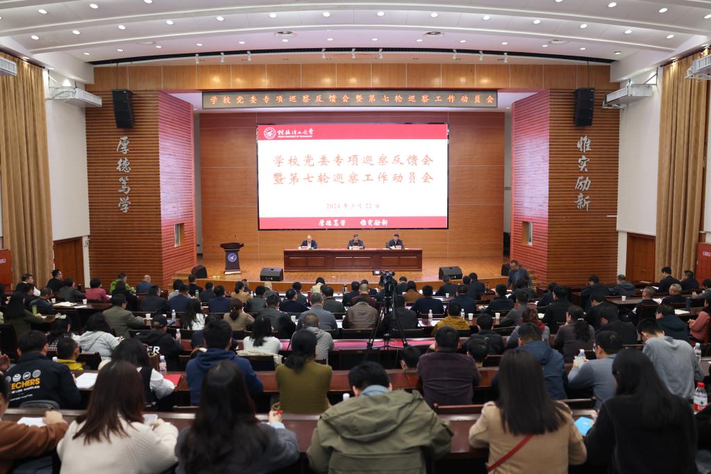 3月22日下午,学校党委专项巡察反馈会暨第七轮巡察工作动员会在屏风校区图书馆报告厅召开。学校党委书记、党委巡察工作领导小组组长邓军出席会议并讲话,自治区纪委监委驻桂林理工大学纪检监察组组长,校党委常委、纪委书记、巡察工作领导小组副组长韦学敏主持会议。党委巡察工作领导小组成员,各二级党组织书记、纪委书记、组织员,第七轮巡察组成员以及被巡察单位领导班子、教职工代表参加会议。